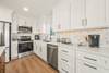 Updated kitchen with new cabinets, quartz countertops, stainless steel appliances, and a convenient mini fridge in the island