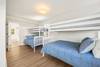 Inside, on the first floor, a peaceful atmosphere surrounds you. This level features three inviting bedrooms and two full bathrooms, each thoughtfully designed for comfort. Two rooms are furnished with king beds and open onto covered decks facing the ocean, ideal for waking up to a gentle sea breeze. The third bedroom features two pyramid bunks (twin over full) and a smart TV, offering flexibility for extra guests or larger families. Every element here has been carefully chosen to create a restful haven after a day of sun and sand.